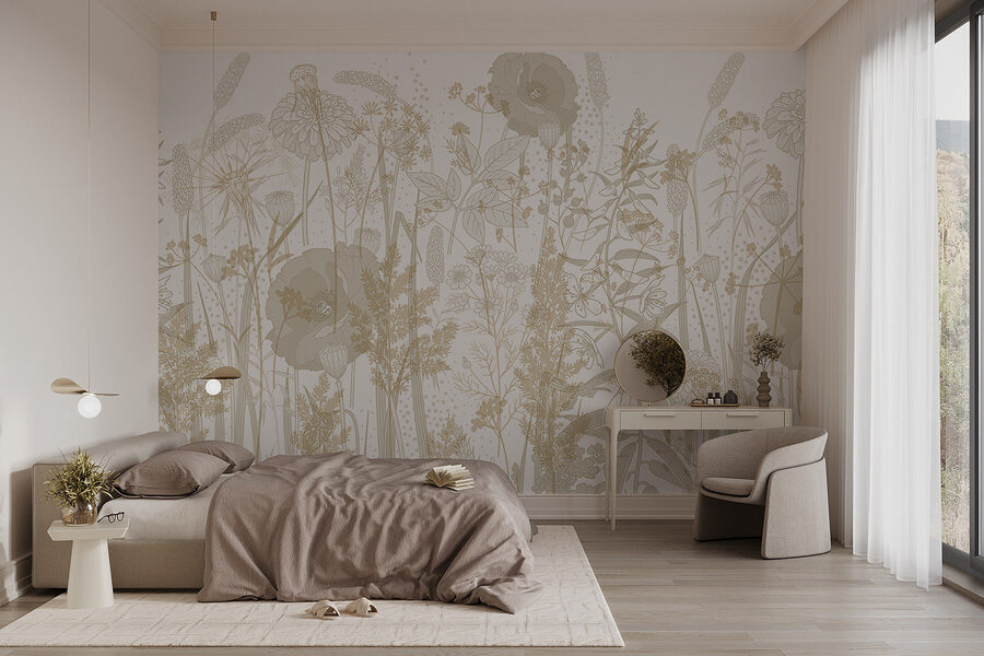 Imagine stepping into a serene garden every day without ever leaving your home! This whimsical floral mural in soft beige tones turns any wall into a peaceful escape. With delicate flowers and flowing stems, it feels like the beauty of nature is wrapping around you. Perfect for those cozy mornings with a cup of coffee or bright afternoons with a book. It’s like having a gentle hug right in your living space. Plus, it adds a hint of elegance that makes guests pause in admiration. Seriously, who wouldn’t want that? A great way to bring calm and style together!