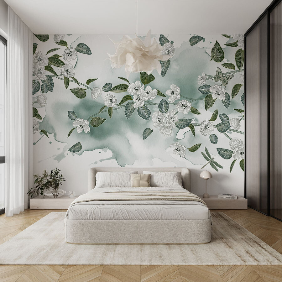Proměňte svůj prostor pomocí této okouzlující tapety s bílými květy a svěžími zelenými listy, které se rozprostírají na jemně bílém pozadí. Je to, jako by se vaše stěny rozhodly uspořádat zahradní párty a pozvaly přírodu přímo do vašeho domova. Představte si, jak popíjíte kávu, zatímco kolem vás poletují motýli (dobře, možná ne doslova, ale ten pocit je podobný). Tento akvarelový design dodává uklidňující atmosféru, která je ideální pro útulné obývací pokoje nebo klidné ložnice. Je osvěžující, elegantní a lehce fantaskní – určitě podnítí konverzaci! A navíc, kdo by nechtěl každý den vstávat s návalem květinové radosti?