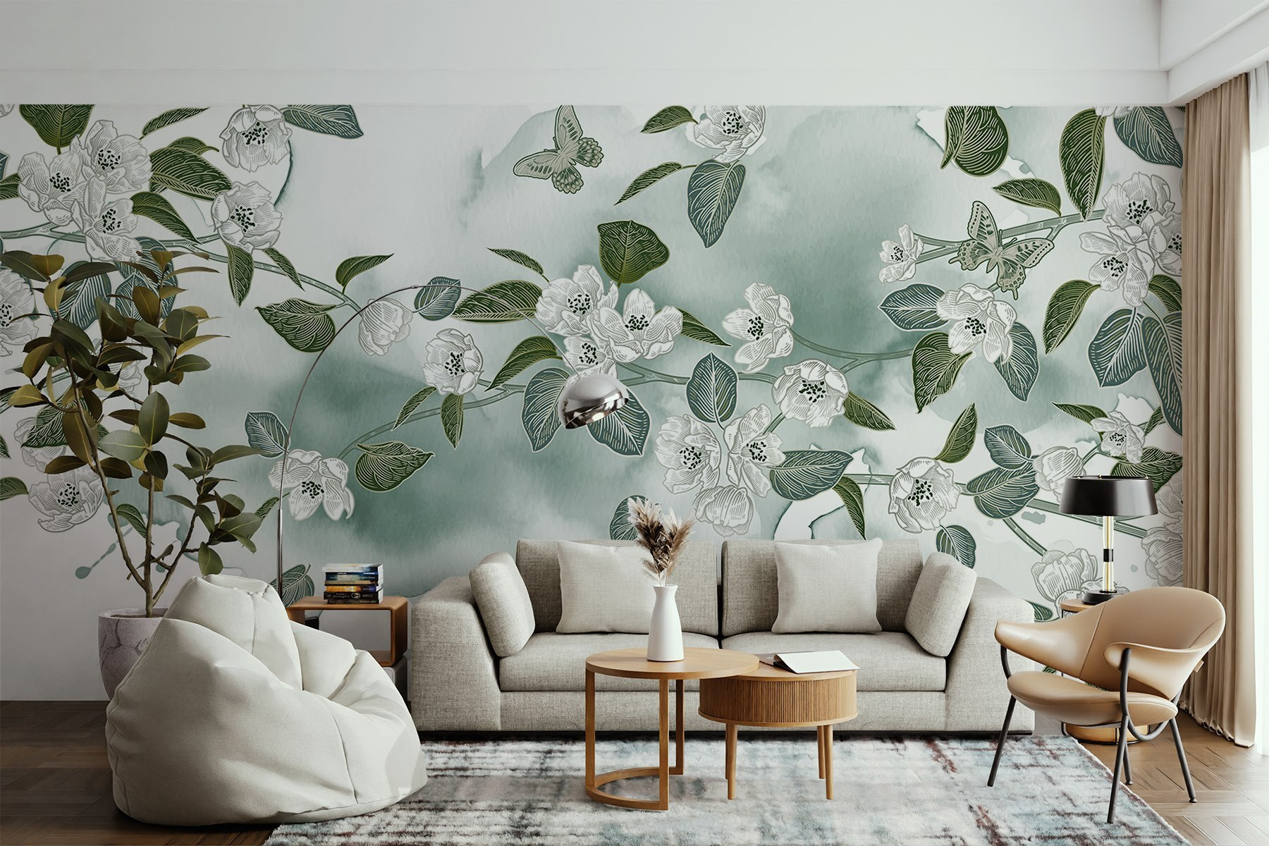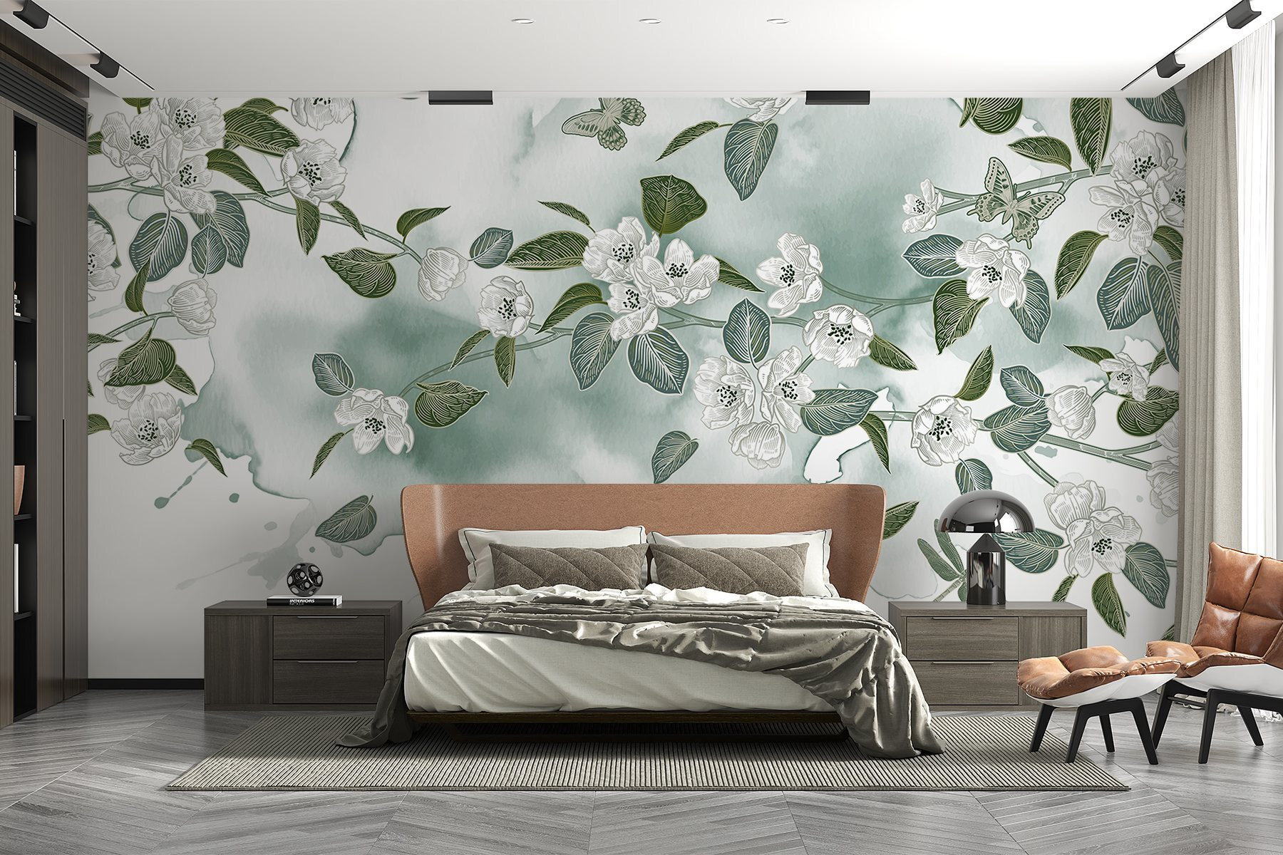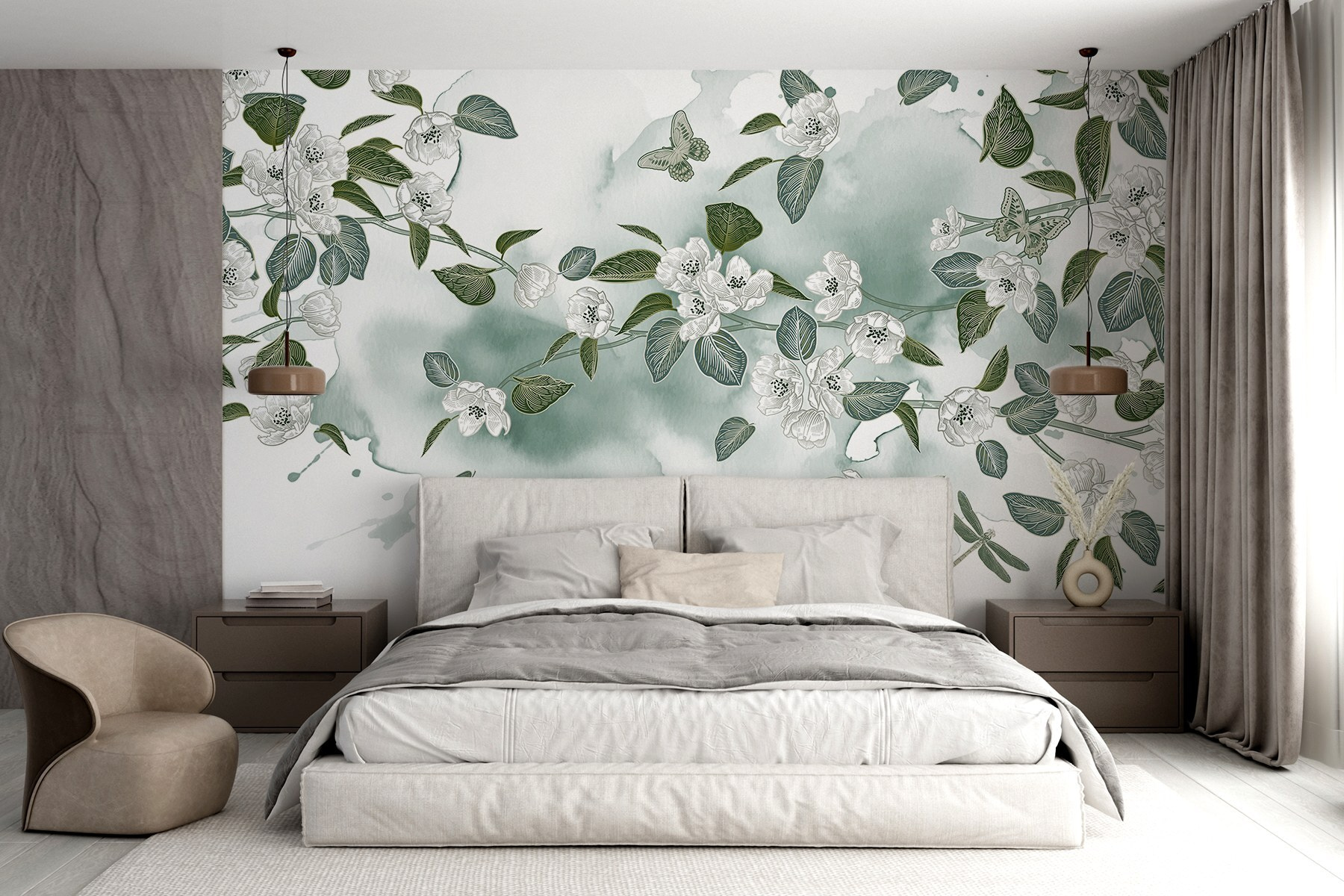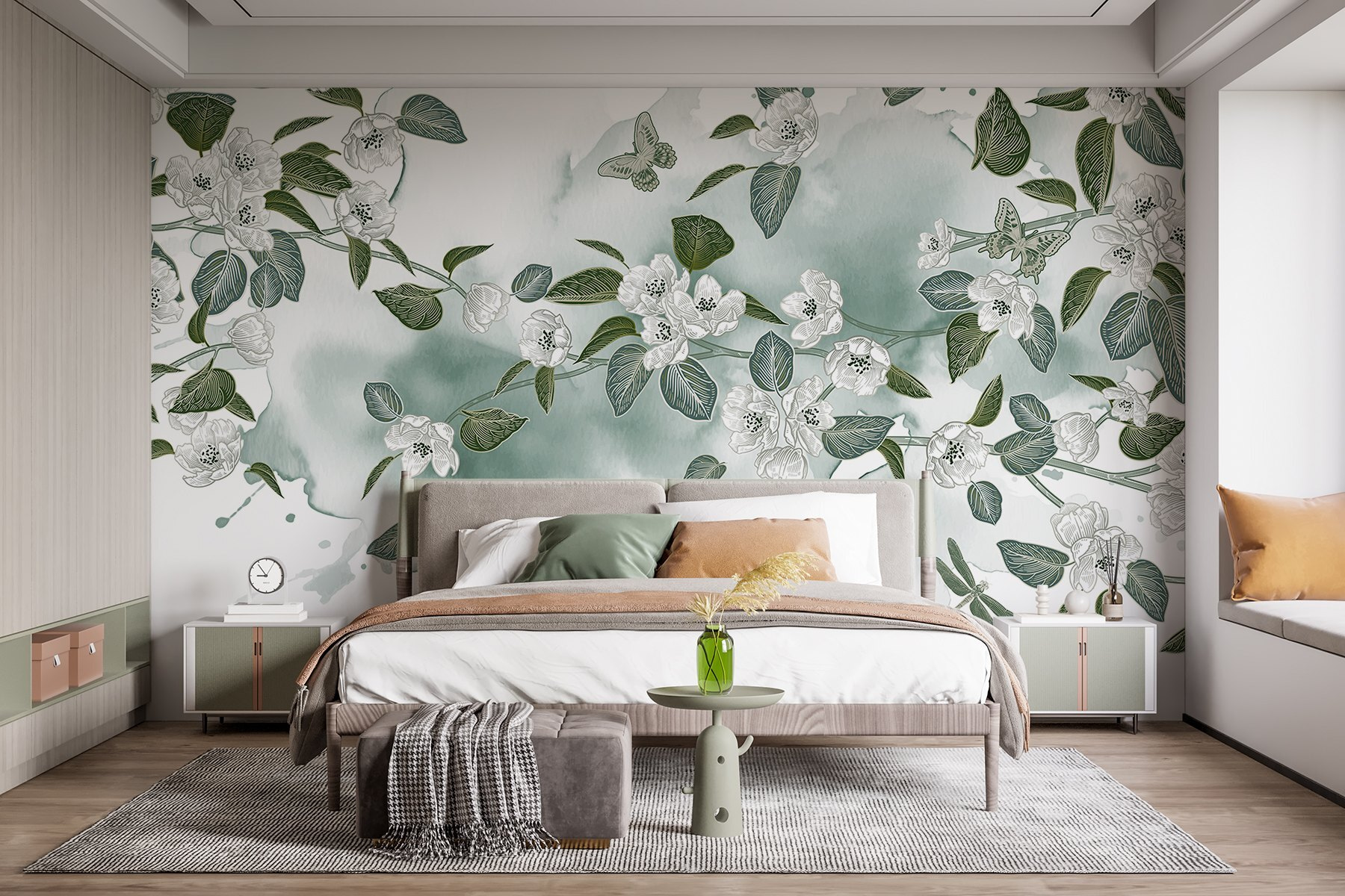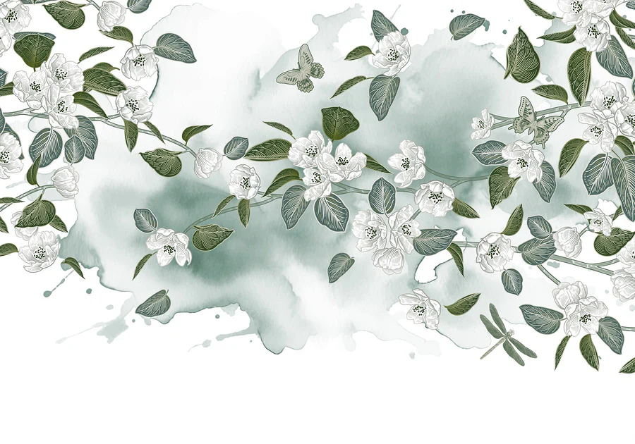 Proměňte svůj prostor pomocí této okouzlující tapety s bílými květy a svěžími zelenými listy, které se rozprostírají na jemně bílém pozadí. Je to, jako by se vaše stěny rozhodly uspořádat zahradní párty a pozvaly přírodu přímo do vašeho domova. Představte si, jak popíjíte kávu, zatímco kolem vás poletují motýli (dobře, možná ne doslova, ale ten pocit je podobný). Tento akvarelový design dodává uklidňující atmosféru, která je ideální pro útulné obývací pokoje nebo klidné ložnice. Je osvěžující, elegantní a lehce fantaskní – určitě podnítí konverzaci! A navíc, kdo by nechtěl každý den vstávat s návalem květinové radosti?