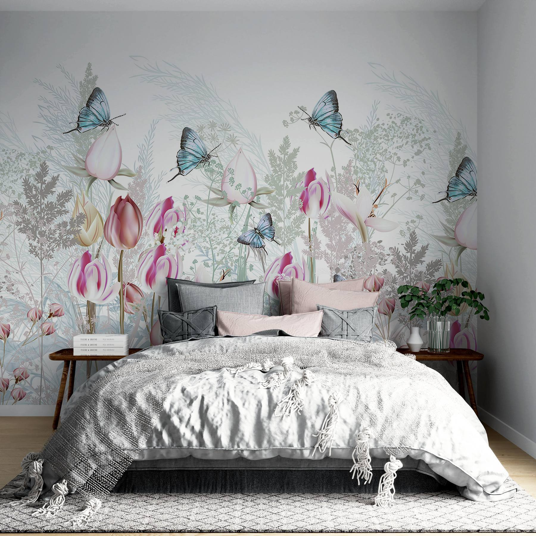 Proměňte každou místnost pomocí okouzlující nástěnné malby Třepotající se krása v květinové zahradě. Tato nástěnná malba je jako procházka rozkvetlým rájem s jemnými květy a půvabnými motýly, kteří jako by se téměř třepotali. Přináší pocit klidu a radosti, takže si budete připadat, jako byste vstoupili do tajné zahrady přímo u vás doma. Představte si, že při pohledu na tuto živou scénu popíjíte kávu a představujete si teplý vánek a jemné šustění listů. Ideální pro útulný obývací pokoj nebo klidnou ložnici, je to nádherný dotek, který dodá vašemu prostoru život. Kdo by řekl, že zdobení může být tak povznášející?