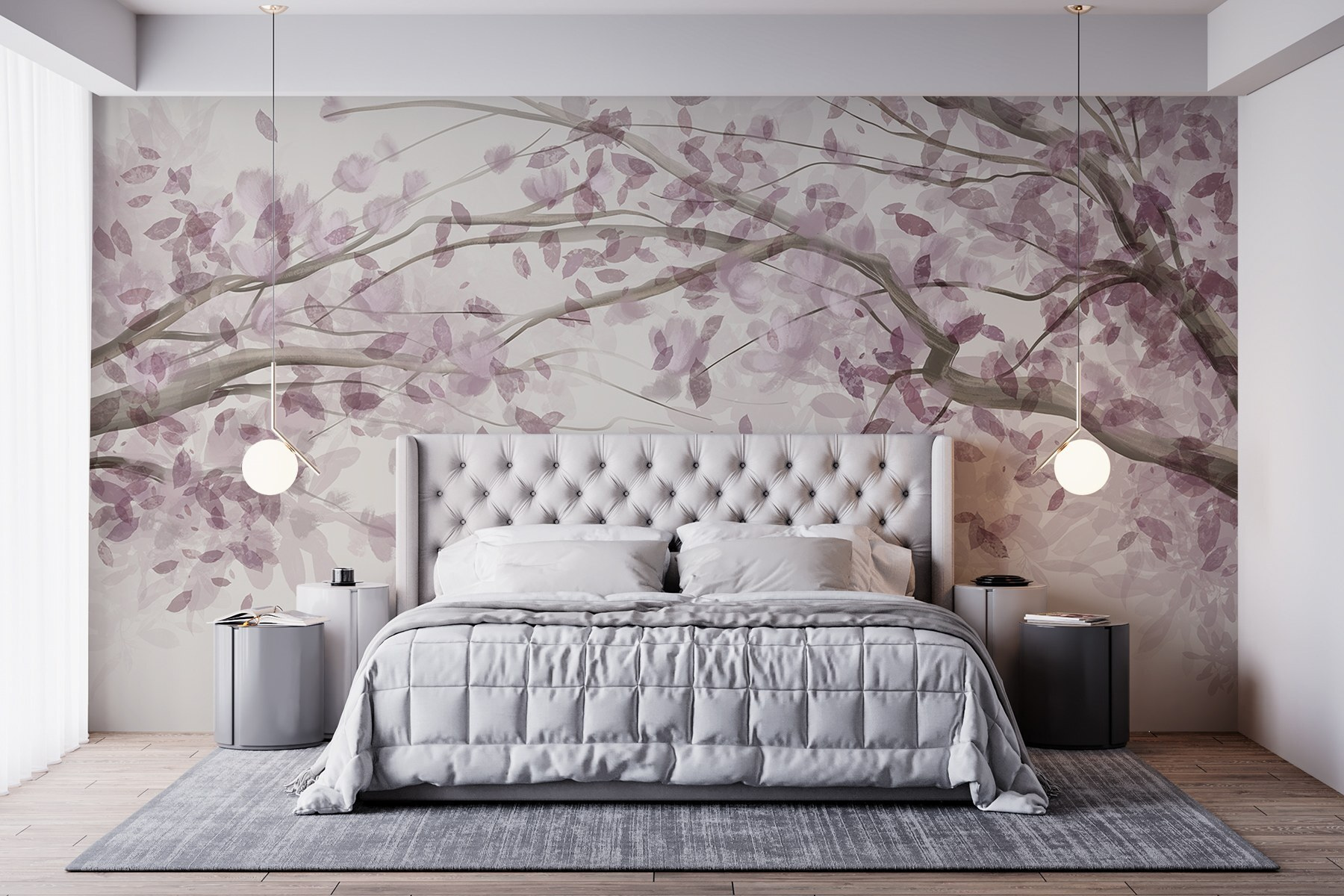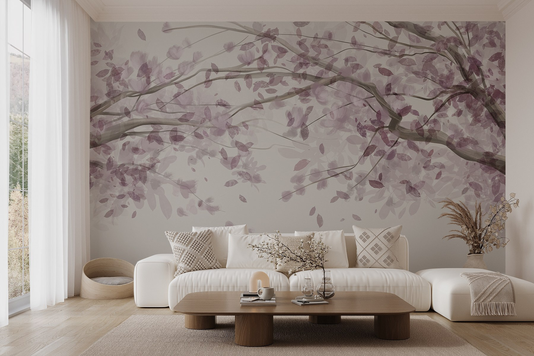 S touto okouzlující nástěnnou malbou se stromem zdobeným elegantními fialovými listy proměníte každou místnost v klidné útočiště. Jako byste si do interiéru přinesli kousek uklidňující japonské zahrady. Představte si, že popíjíte čaj a díváte se přitom na tyto jemné akvarelové větve – taková nálada! Tato nástěnná malba našeptává klid, takže se skvěle hodí do útulného čtecího koutku nebo hravého dětského pokoje. Navíc ty fialové odstíny? Dodávají šmrnc, aniž by zahlcovaly smysly. Kdo by necítil trochu radosti pokaždé, když jde kolem? Ideální pro každého, kdo doma hledá dotek půvabu přírody. Přijměte tu krásu!