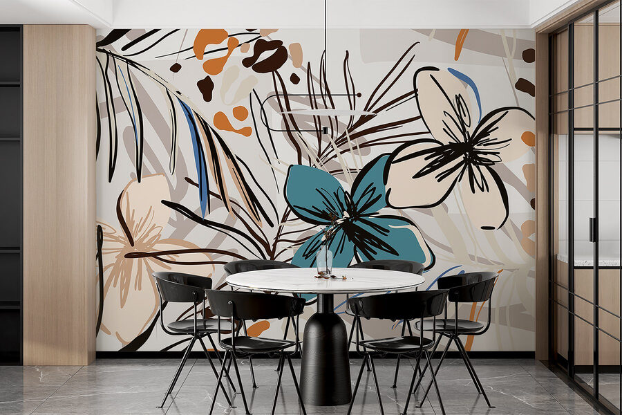 S touto živou fototapetou s hravým květinovým vzorem proměníte každou místnost v tropický ráj. Představte si, že vstoupíte do svého prostoru a přivítají vás záplavy barevných květin a elegantní, pohupující se listy. Je to jako přenést si do domu venkovní prostředí bez hmyzu, že? Tento kousek je ideální pro oživení nudné stěny a evokuje slunečné dny a uklidňující vibrace. Přátelé se pravděpodobně budou dvakrát ptát, jestli jste si doma právě neužili mini dovolenou. Komu by se to nelíbilo? Ať už se nachází v obývacím pokoji, útulném zákoutí, nebo dokonce v koupelně, tato nástěnná malba našeptává teplo a kreativitu, díky čemuž vaše stěny ožijí. Připravte se na to, že se budete cítit inspirováni pokaždé, když půjdete kolem!