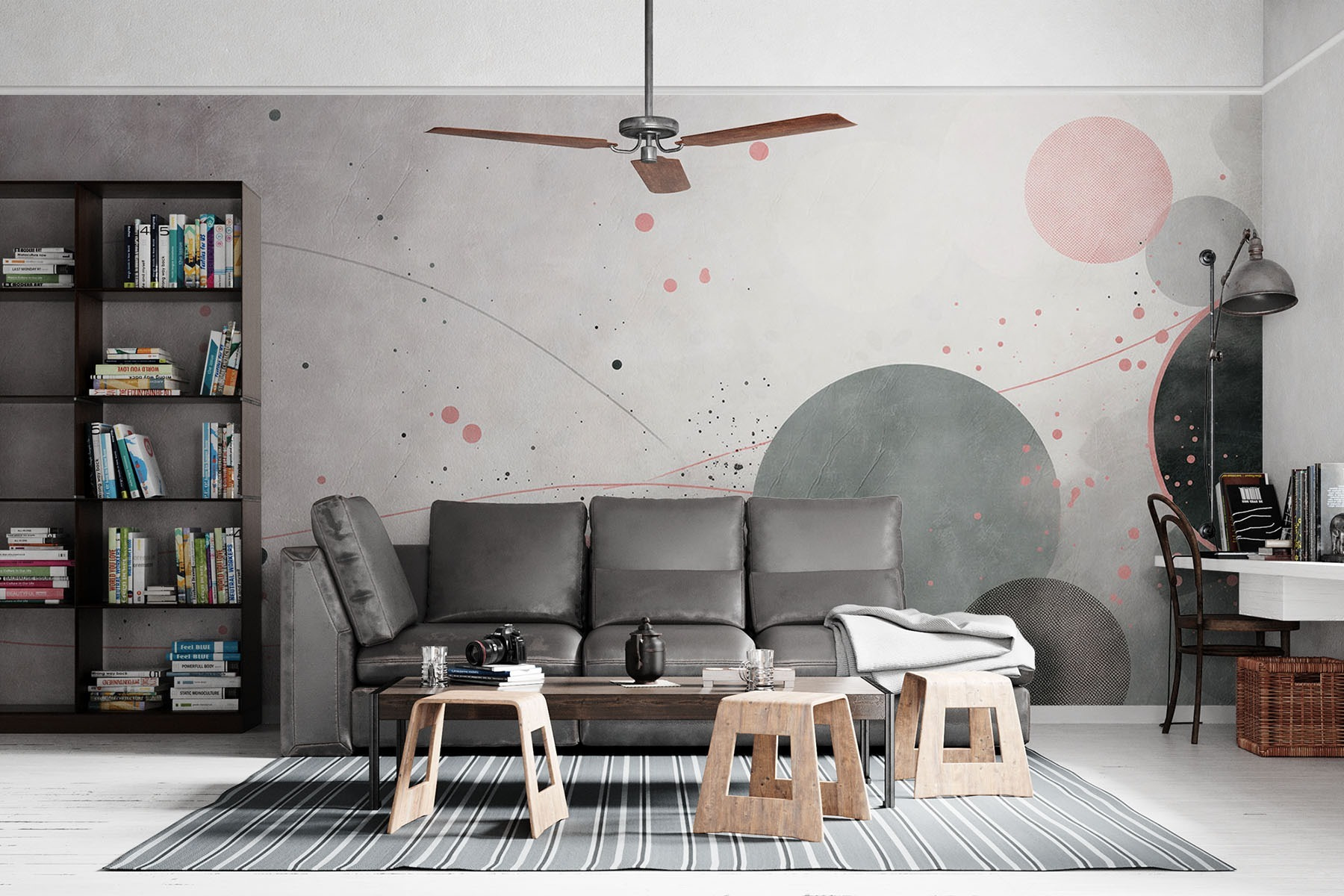 Proměňte svůj prostor pomocí této úžasné nástěnné malby s šedými a růžovými kruhy a náladovými liniemi. Bez námahy spojuje moderní styl s nádechem hravého kouzla, díky čemuž bude každá místnost působit svěže a příjemně. Představte si, jak popíjíte kávu a přitom nasáváte jemné barevné vibrace, nebo jak se po dlouhém dni ukládáte k spánku a cítíte, jak stres mizí. Je to jako jemné objetí pro vaše stěny, ideální pro útulný obývací pokoj nebo elegantní kancelář. Tato nástěnná malba není jen dekorací, ale i podnětem ke konverzaci – kdo by si nechtěl povídat o těch poutavých kruzích? Věřte mi, že vašemu domovu dodá něco výjimečného.
