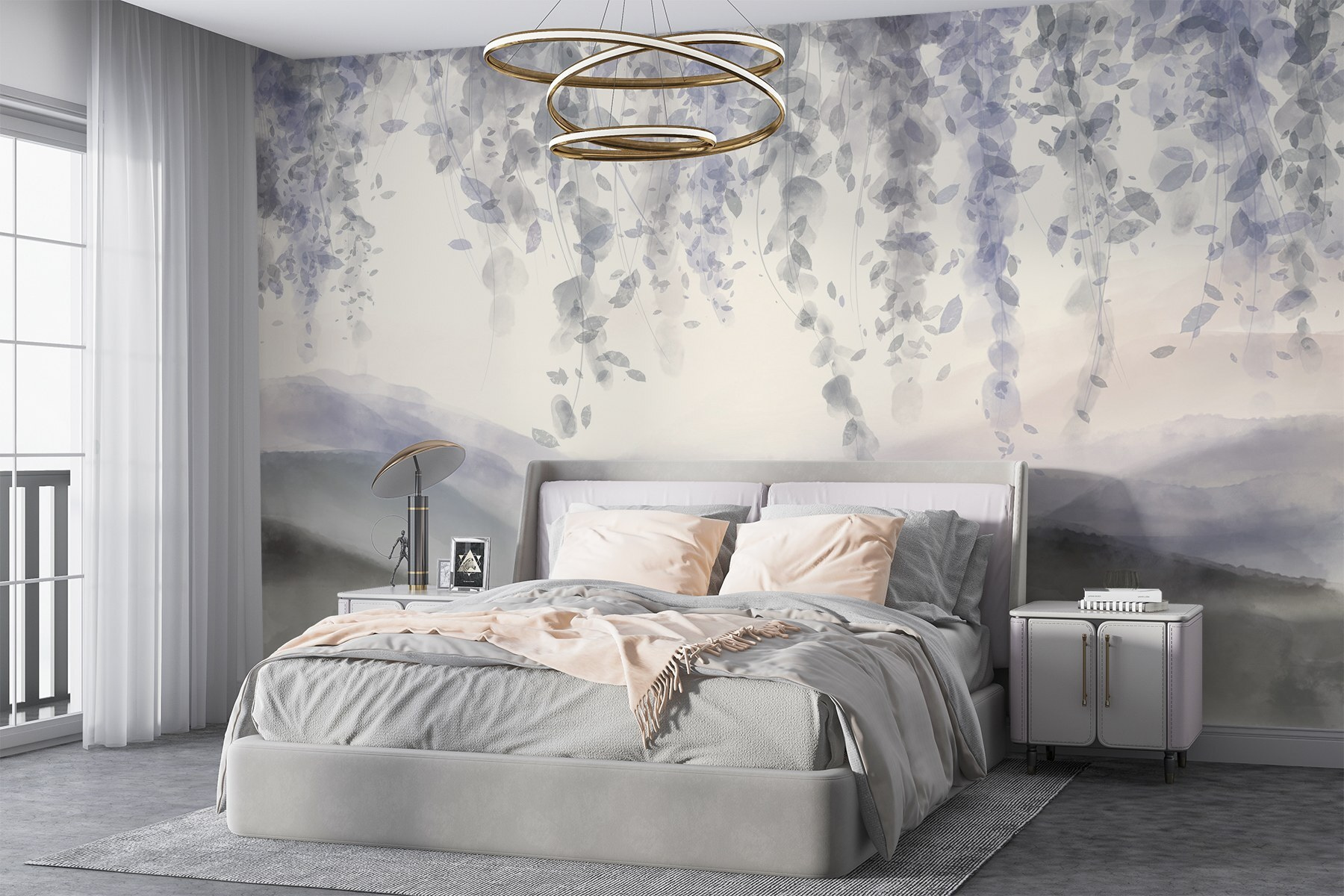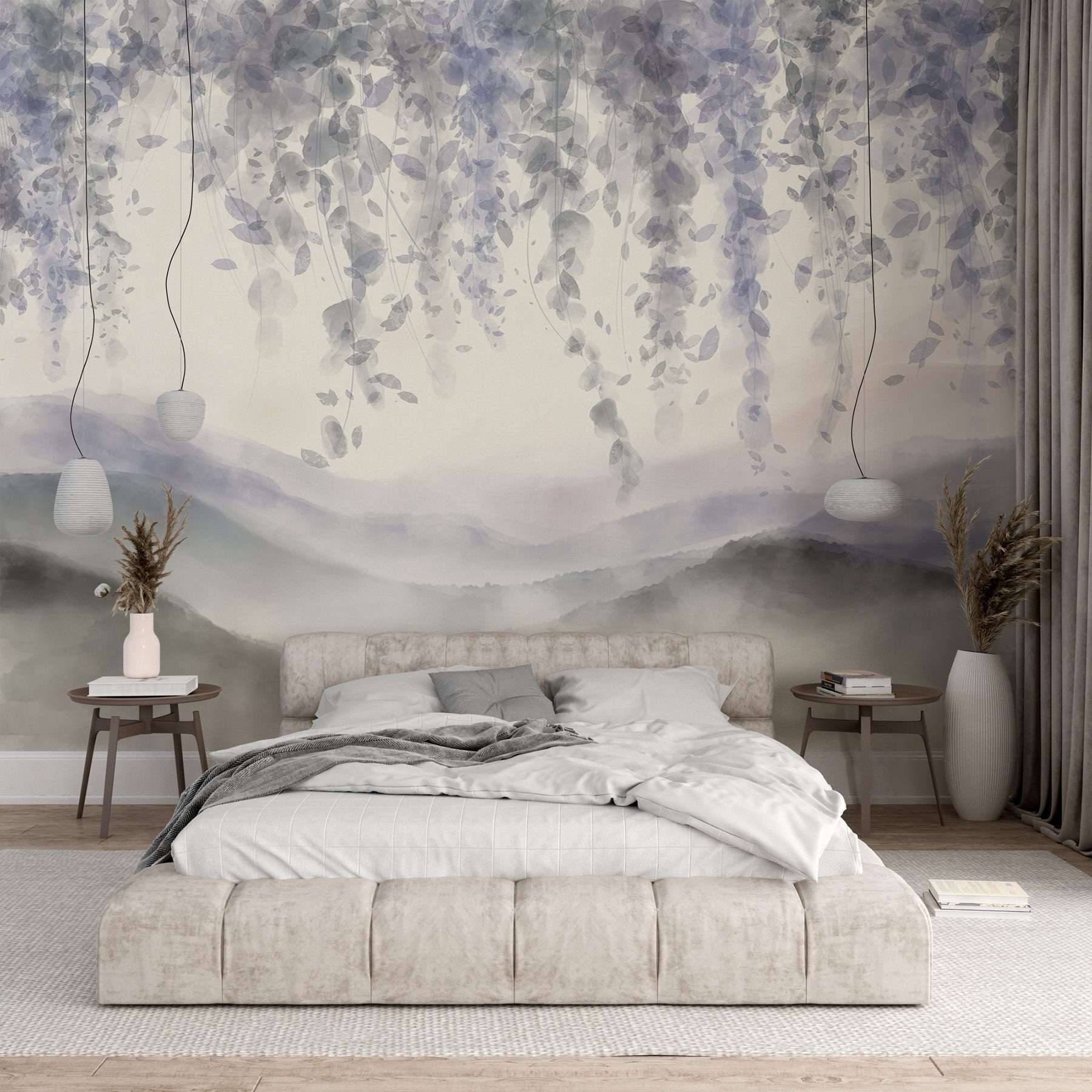 Proměňte jakýkoli prostor pomocí této zasněné nástěnné malby, kde se mlhavé hory setkávají s plovoucími listy. Představte si, že se probouzíte do krajiny, která šeptá klid. Jemné barvy se snadno prolínají, takže je ideální pro útulný čtecí koutek nebo uklidňující ložnici. Je to jako mít v interiéru kousek přírody, bez brouků a špíny. Jen si představte, jak popíjíte ranní kávu při pohledu na tento klidný výhled. Ideální pro každého, kdo chce uniknout shonu – relaxační atmosféra této nástěnné malby je o dobrých pocitech. Je to jemná připomínka, že je třeba dýchat, odpočívat a užívat si každý okamžik.