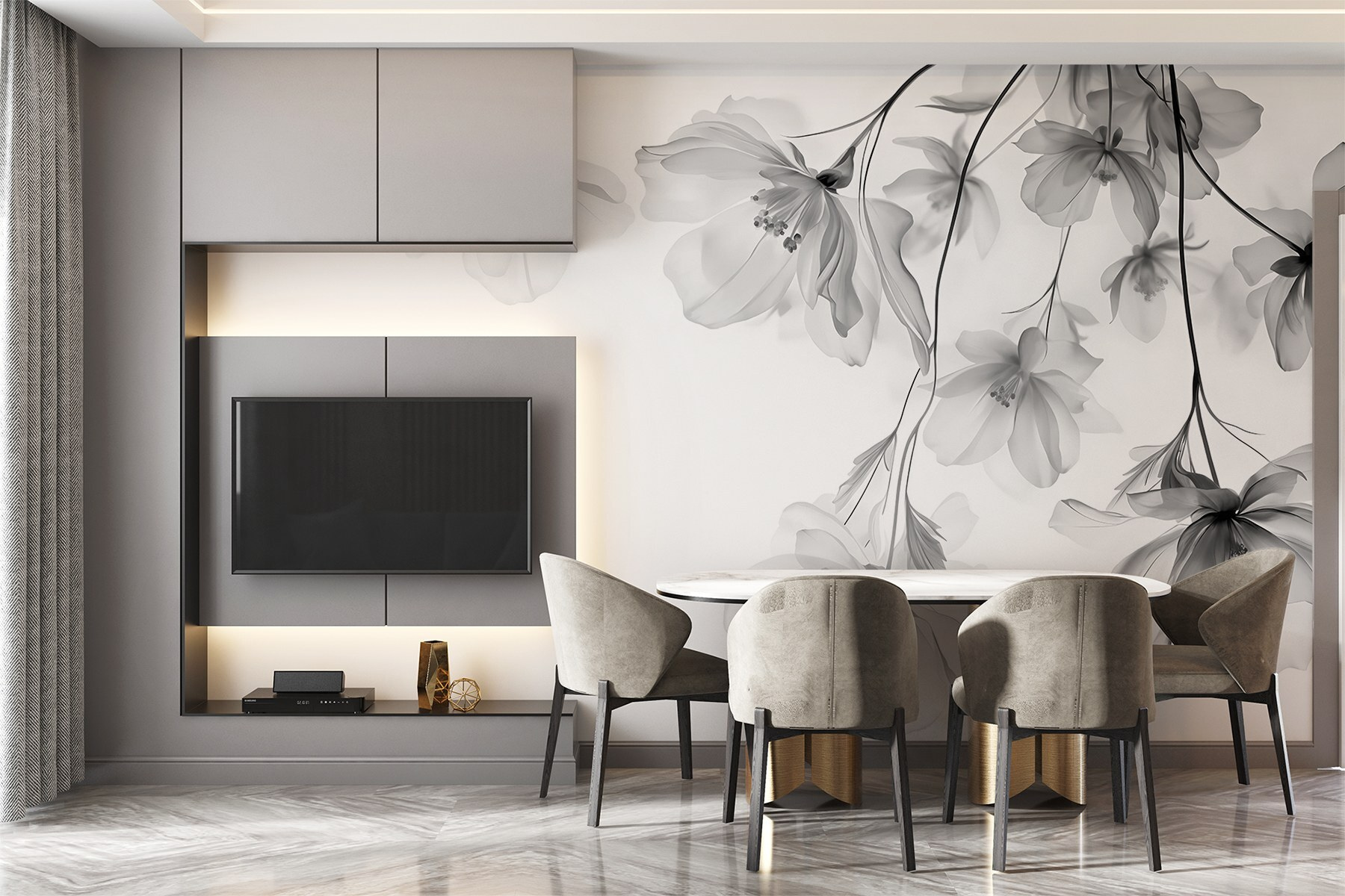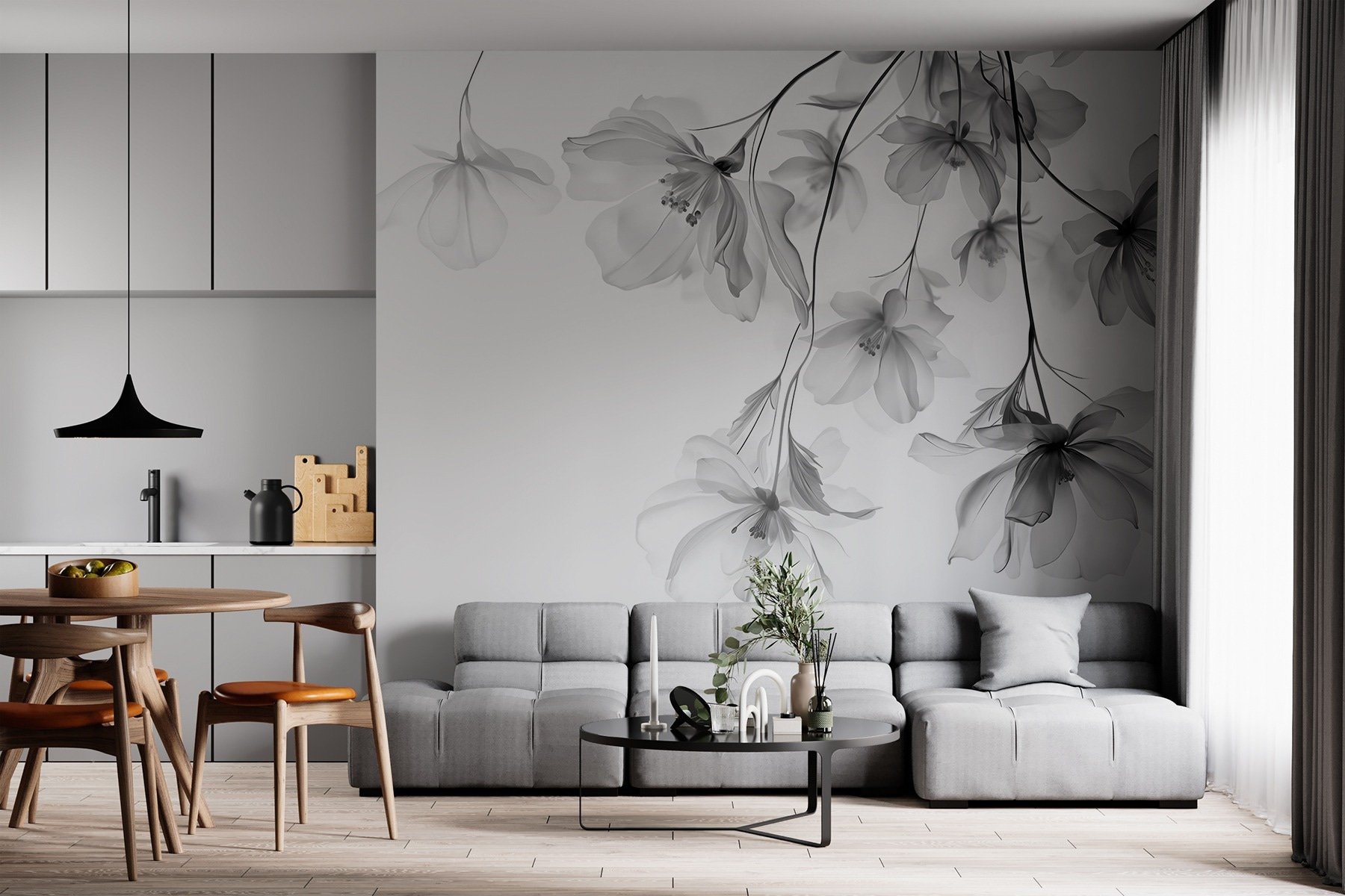 Proměňte jakoukoli stěnu v klidné útočiště díky této úžasné fototapetě s jemnými květinami v jemných jednobarevných odstínech. Představte si, jak za klidného rána popíjíte kávu, jen vy a toto umění, které do vašeho prostoru vnese pocit klidu. Jemný tok květů vytváří zasněnou atmosféru, ideální pro útulný čtecí koutek nebo klidnou ložnici. Je to jako vnést do interiéru závan čerstvého vzduchu, bez kýchání! Tato nástěnná malba nejen zdobí; vypráví příběh o jednoduchosti a eleganci a připomíná každému, aby přijal krásu v jemnosti. Ideální pro ty, kdo zbožňují jedinečné dekorace, které vyvolávají radost.