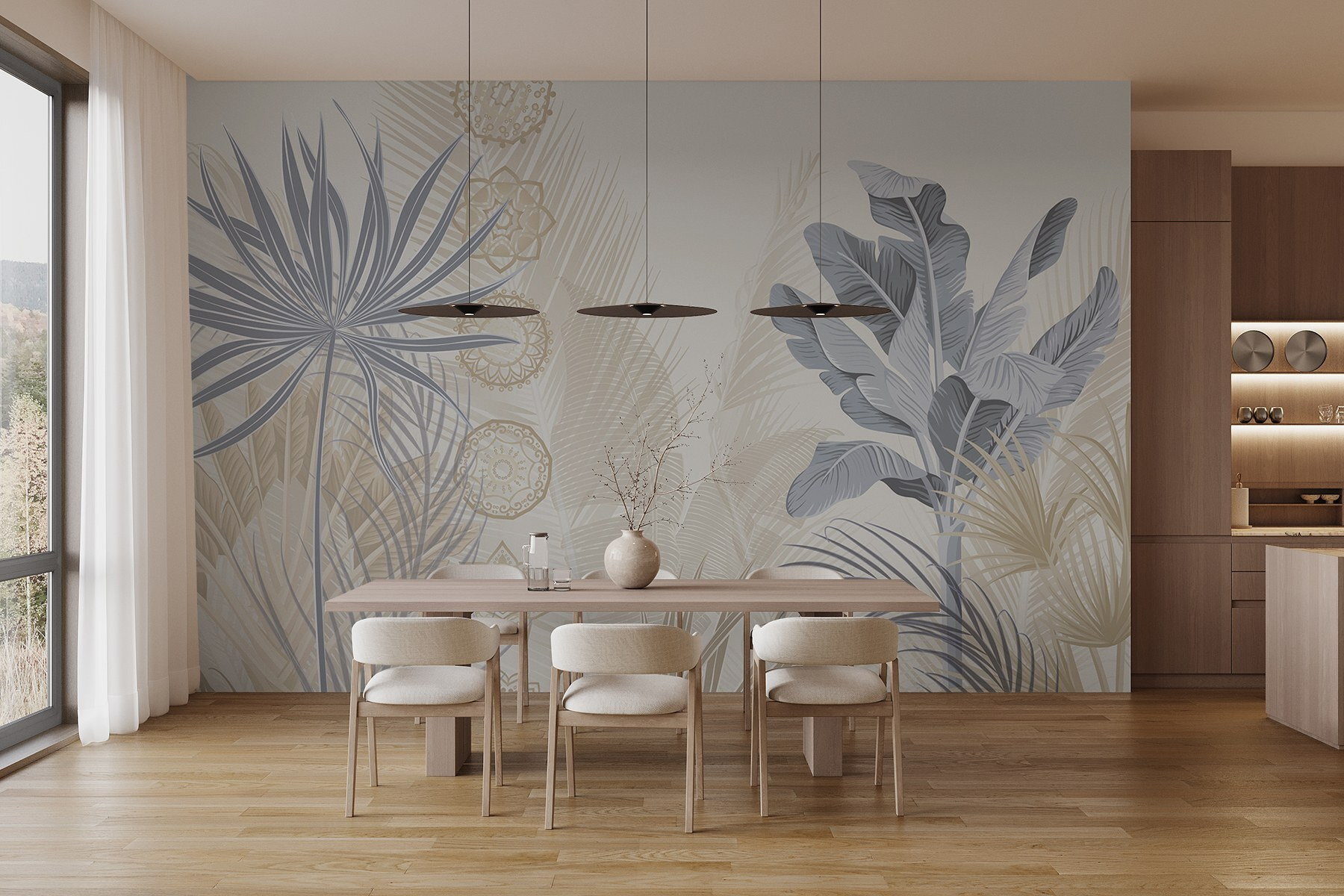 S touto éterickou botanickou nástěnnou malbou proměníte každou místnost v oázu klidu. Představte si, že se probudíte a na stěnách vám budou jemně tančit jemné listy a měkké odstíny, jako by se příroda právě pozvala dovnitř. Jemné tóny vytvářejí uklidňující atmosféru, která je ideální pro popíjení ranní kávy nebo odpočinek po dlouhém dni. Představte si útulné večery, kdy se scházejí přátelé a obdivují krásu kolem sebe. Není to jen dekor, je to pocit. Tato nástěnná malba, ideální do obývacího pokoje nebo klidného čtecího koutku, našeptává relaxaci a kreativitu zároveň. Kdo by nechtěl žít v botanickém snu?