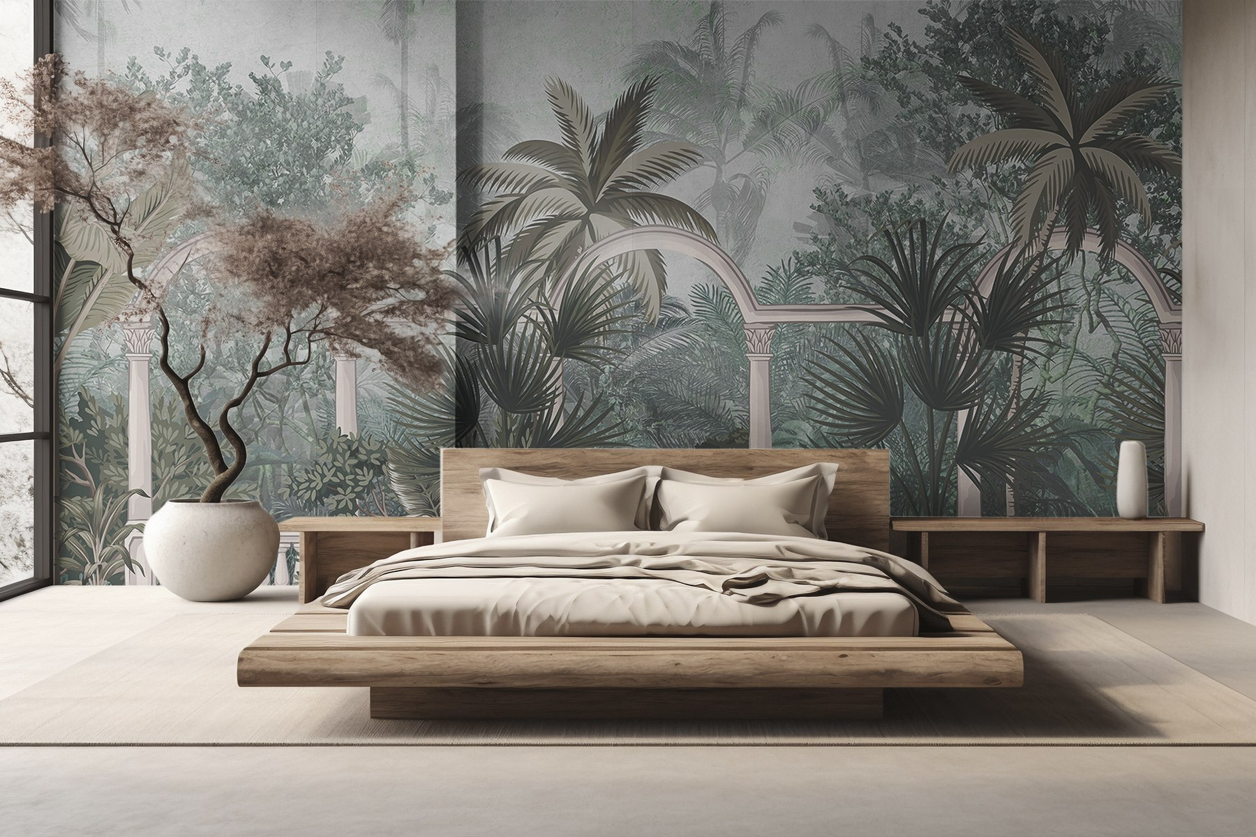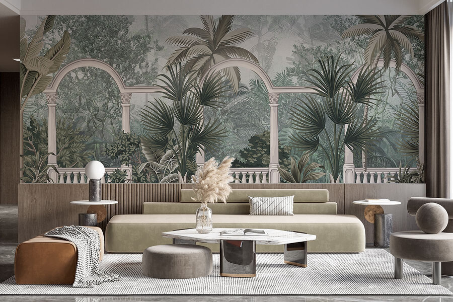 Proměňte svůj prostor v tropickou dovolenou s touto úžasnou fototapetou se svěžími palmami a okouzlujícím balkonem. Představte si, že popíjíte ranní kávu a přitom se vyhříváte v mini ráji – je to jako pozvat léto do interiéru, a to po celý rok! Jemná zeleň a architektonické detaily vytvářejí uklidňující atmosféru, která je ideální pro dny, kdy potřebujete jen trochu uniknout z reality. Pociťte jemný vánek (i když je to jen větrák), protože tato nástěnná malba udává uklidňující tón. Je to jako dovolená bez letenky. Ideální pro útulná zákoutí nebo i pro tu velkou prázdnou stěnu, která si přímo říká o nějakou osobnost! Přijměte klid a nechte přírodu inspirovat váš dekor.