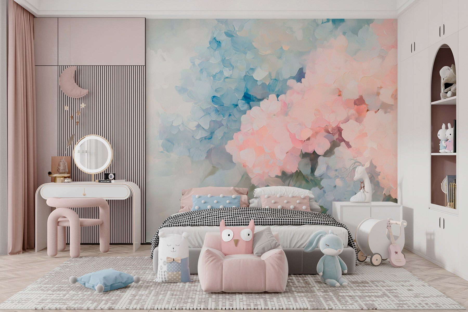 Proměňte každou místnost pomocí této okouzlující nástěnné malby s jemnými květinami na jemném bílém pozadí. Představte si to: vejdete do svého prostoru a přivítá vás něžná krása pastelových odstínů, jako šepot jara i uprostřed zimy. Je to jako mít okouzlující zahradu přímo ve svém domově. Přátelé si možná budou myslet, že jste si najali luxusního dekoratéra, ale ve skutečnosti je to jen tato nástěnná malba, která dělá svá kouzla. Představte si, že popíjíte kávu a kocháte se tímto květinovým potěšením; možná vám to rozjasní pondělní ráno. Tato nástěnná malba je ideální pro útulné kouty nebo živé obývací pokoje a přináší živost, aniž by překypovala energií. Je to snadný způsob, jak si na stěnách vytvořit pocit hřejivého objetí. Prostě dejte sbohem nudným stěnám a přivítejte květinovou blaženost!