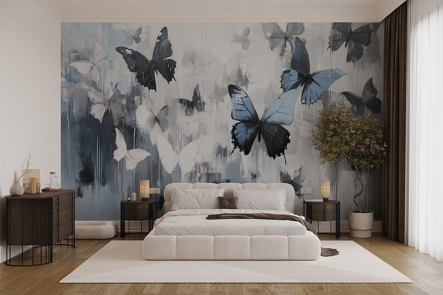 Proměňte jakýkoli prostor pomocí této okouzlující nástěnné malby motýlů v letu. Je to jako mít přírodní rezervaci přímo na zdi, bez komárů! Představte si, že se probudíte a máte pocit, že jste vstoupili do říše snů, kde spolu tančí barvy – jemná modrá, křehká bílá a výrazná černá se spojují v překrásnou scénu. Je ideální do útulného zákoutí nebo živého obývacího pokoje. Hosté možná udělají dvojí pohled a budou přemýšlet, zda nenarazili na rozmarnou zahradu. Představte si, jak popíjíte kávu a přitom se díváte na tyto třepetající se krásky – je to čiré blaho. Kdykoli někdo vejde dovnitř, pomyslí si: “Páni, to je nádhera!”. Kdo by to nechtěl?