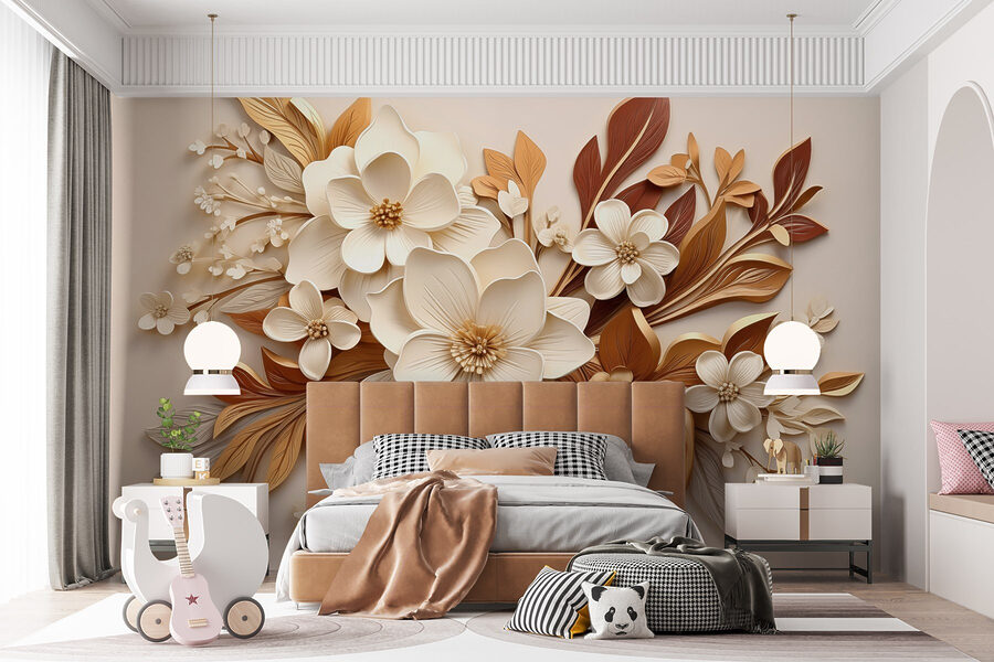 Proměňte jakýkoli prostor pomocí této okouzlující nástěnné malby s nádhernou kombinací bílých a hnědých květin. Představte si, že vejdete do místnosti, která bude připomínat spíše sluncem prozářenou zahradu než jen zdi. Design našeptává teplo a útulné vibrace – ideální pro zákoutí, kde se člověk může schoulit s dobrou knihou nebo popíjet kávu při snění. Jednotlivé okvětní lístky a listy spolu příjemně ladí a vytvářejí jemný ústřední bod, který vybízí ke konverzaci. Vážně, dokážete si představit své hosty, jak ho obdivují? Je to jako mít kousek přírody přímo ve svém domě, bez pylu.