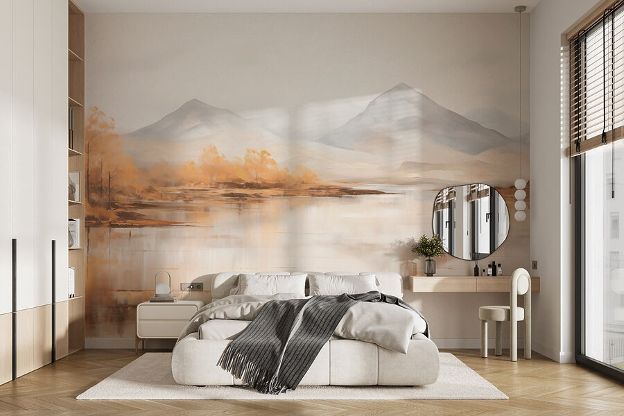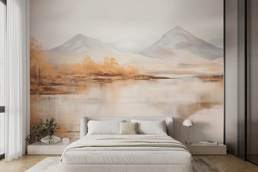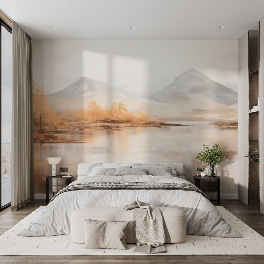 Proměňte stěnu v klidné útočiště pomocí této nástěnné malby s klidnými vodami a vzdálenými horami. Je to jako přenést si kus přírody do interiéru – představte si, jak popíjíte kávu při pohledu na malebnou krajinu a cítíte, jak se stres rozplývá. Měkké akvarelové tóny působí uklidňujícím dojmem a jsou ideální pro útulná zákoutí nebo i pro tu jedinou stěnu, která prostě potřebuje trochu osobitosti. Přátelé se budou ptát, kde jste našli takový skvost, a málokdo bude vědět, že je to tak jednoduché jako nástěnná malba. Je to skoro jako mít doma miniaturní dovolenou, bez cestovních starostí!