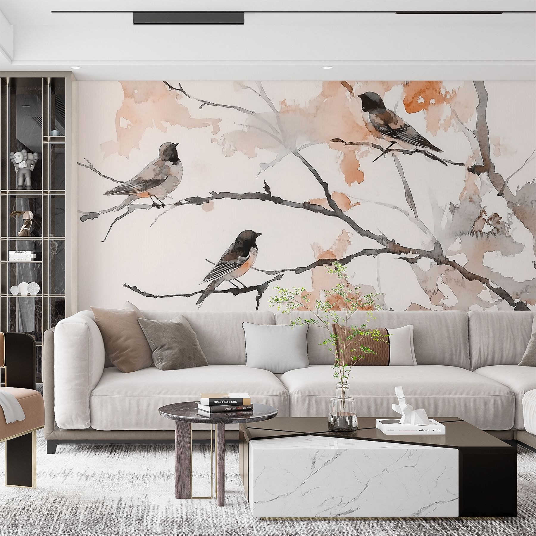 Proměňte jakoukoli stěnu v klidné útočiště díky této podmanivé nástěnné malbě se skupinou ptáků sedících na jemných větvích. Jemné akvarelové tahy přinášejí jemné kouzlo a pozvou kousek přírody přímo do vašeho prostoru. Představte si, že vstoupíte do útulného zákoutí plného klidu, kde tito malí ptačí společníci jako by prozpěvovali celý den. Tato nástěnná malba nejen visí, ale také dýchá životem a vybízí vás k zastavení, zamyšlení a možná i k popíjení šálku čaje, zatímco se budete kochat výhledem. Je to jako mít kousek venkovního prostředí v interiéru, ideální pro vytvoření nádherného prohlášení v každé místnosti.