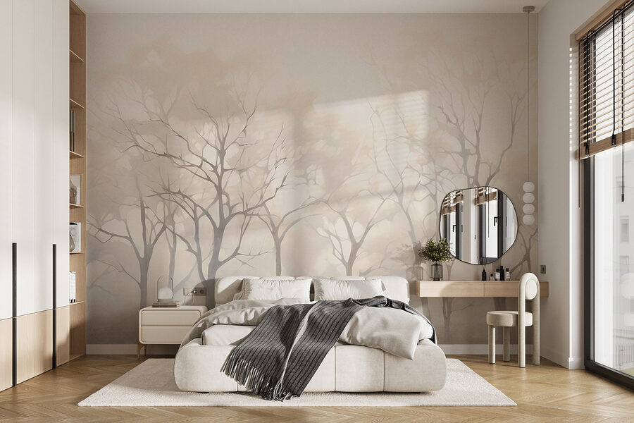Proměňte svůj prostor pomocí zasněné nástěnné malby, která zachycuje klidnou lesní scénu, kde se stromy tyčí uprostřed jemné mlhy. Představte si, že vstoupíte do klidného okamžiku a cítíte, jak vás omývá jemný šepot přírody. Tlumené barvy přinášejí pocit klidu – ideální pro útulný čtecí koutek nebo klidné útočiště v ložnici. Je to jako přenést kousek venkovní přírody dovnitř bez špíny a hmyzu! Představte si, jak se ztrácíte v myšlenkách, popíjíte kávu a tato nástěnná malba vás zahaluje do svého hřejivého objetí. Není to jen dekorace, je to výzva k hlubšímu nadechnutí a odpočinku.