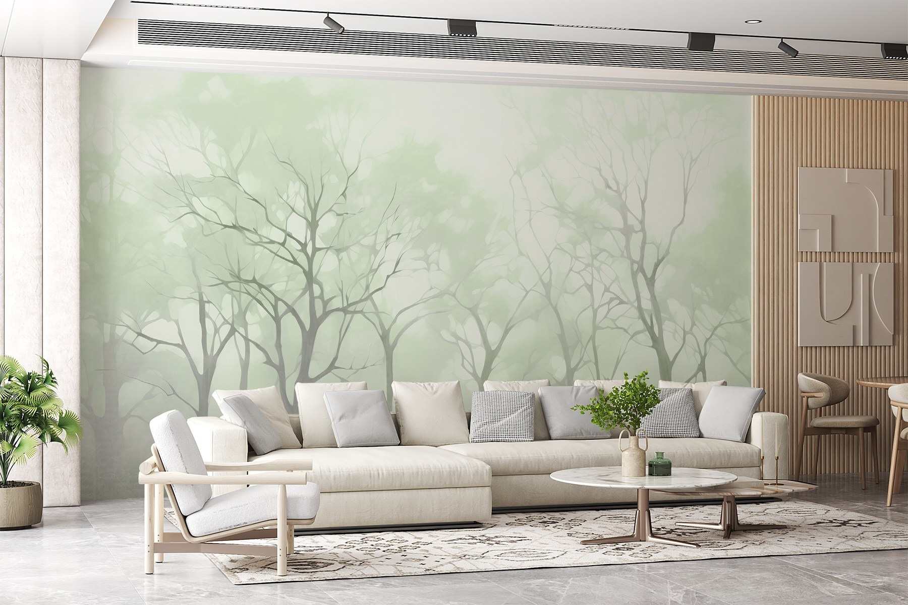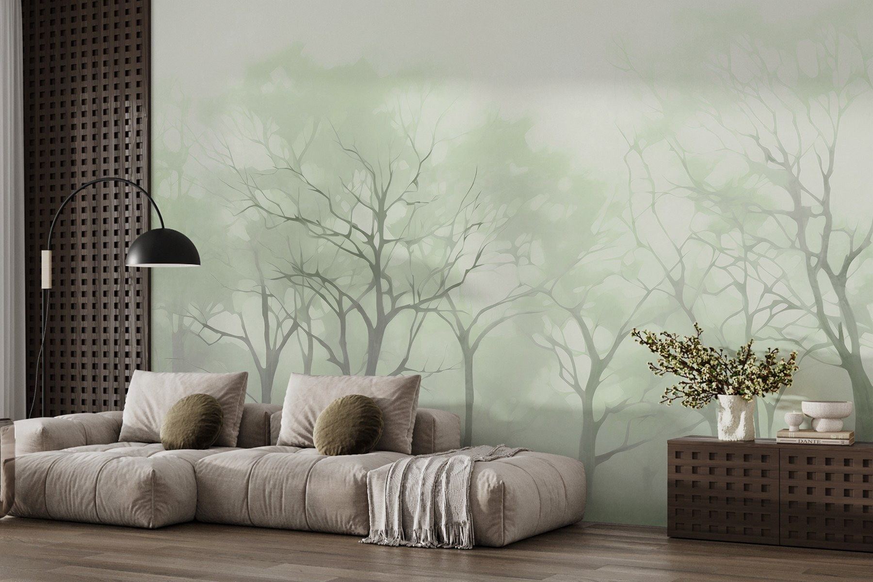Proměňte jakýkoli prostor díky uklidňující atmosféře této nástěnné malby se snovým lesem zahaleným v mlze. Představte si, že vstoupíte do klidného lesa, kde se mlha ovíjí kolem stromů jako příjemná deka. Jako by vám příroda šeptala tajemství, které můžete slyšet jen vy. Tento design, ideální do obývacího pokoje nebo domácí kanceláře, vybízí k pocitu klidu a introspekce, téměř jako když se po dlouhém dni zhluboka nadechnete. Představte si, že popíjíte čaj a díváte se přitom na tento klidný výjev – je to malý únik, o kterém jste nevěděli, že ho potřebujete. Ať už jím proniká ranní světlo, nebo jemné večerní stíny, tato nástěnná malba dodá každé stěně kouzlo.