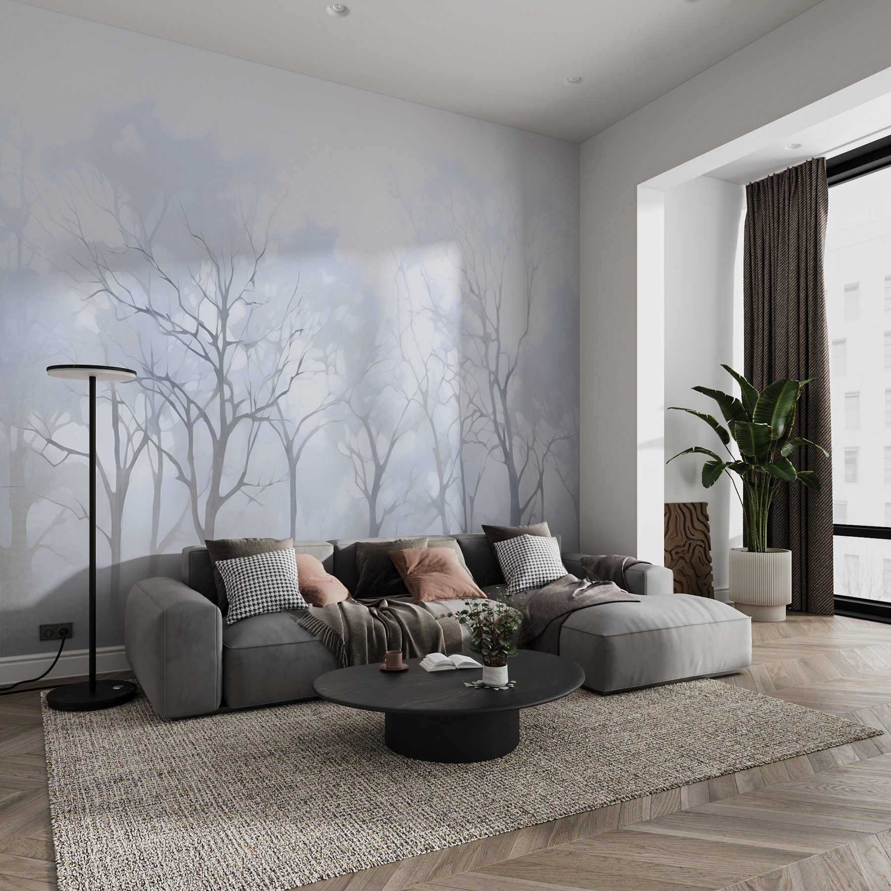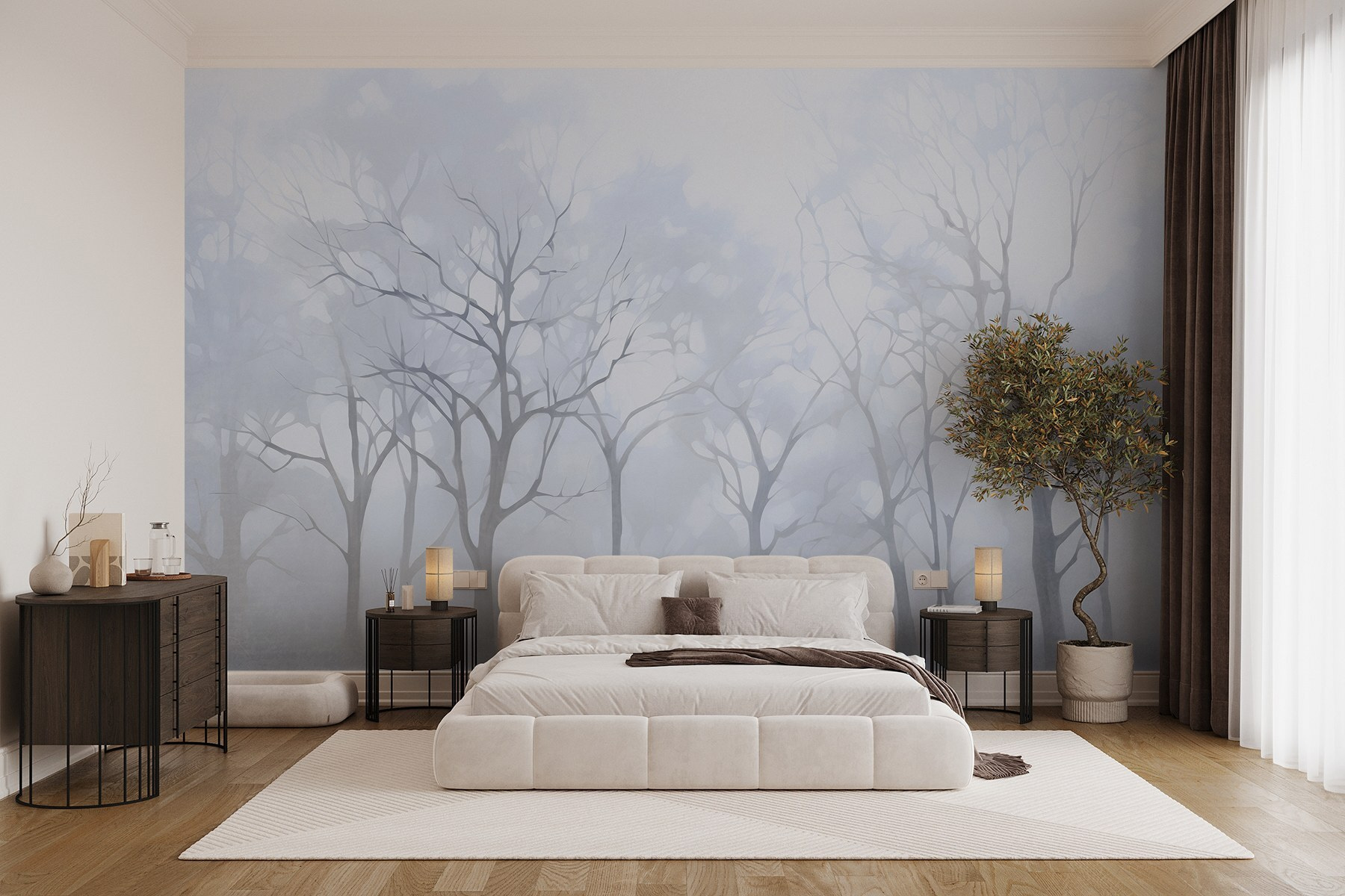 Proměňte svůj prostor v klidné útočiště díky této okouzlující nástěnné malbě se skupinou stromů zahalených do jemné mlhy. Vytváří éterickou atmosféru a zve klid přímo do vašeho domova. Představte si, že se každé ráno probudíte a jako první spatříte mlžný les, který působí jako jemný šepot přírody. Jemné tóny této nástěnné malby vnesou klid do každé místnosti, ideální pro chvíle, kdy potřebujete trochu klidu po hektickém dni. Jen si to představte – útulný čtecí koutek, šálek čaje v páře a ztracení se v tiché kráse této zasněné krajiny. Není to jen dekorace; je to každodenní připomínka hlubokého dýchání a přijímání životních okamžiků.
