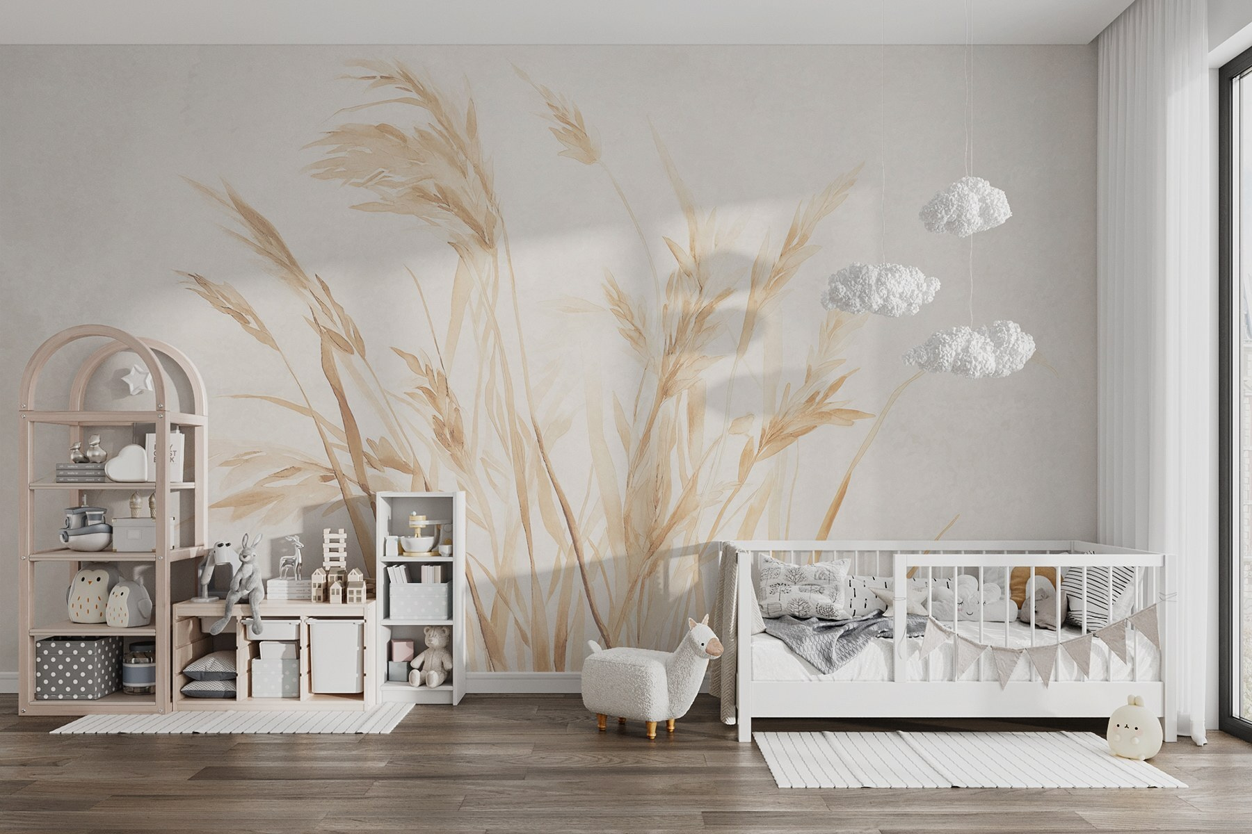 Proměňte každou místnost pomocí této úžasné nástěnné malby Soft Grasses Sway in Gentle Breeze. Představte si to: sedíte v obývacím pokoji, popíjíte kávu a kolem vás se rozlévá klid přírody. Jemné trávy namalované v uklidňujících tónech se téměř zdají pohybovat s jemným větrem a zvou do vašeho prostoru teplo a klid. Je to jako vnést do domu venkovní prostředí bez hmyzu. Přátelé vejdou dovnitř, udělají dvojí pohled a najednou je váš domov útulným útočištěm, kam se všichni chtějí schladit. Tato nástěnná malba, která je ideální pro vytvoření klidného zákoutí nebo oživení chodby, je jemnou poklonou kráse přírody.