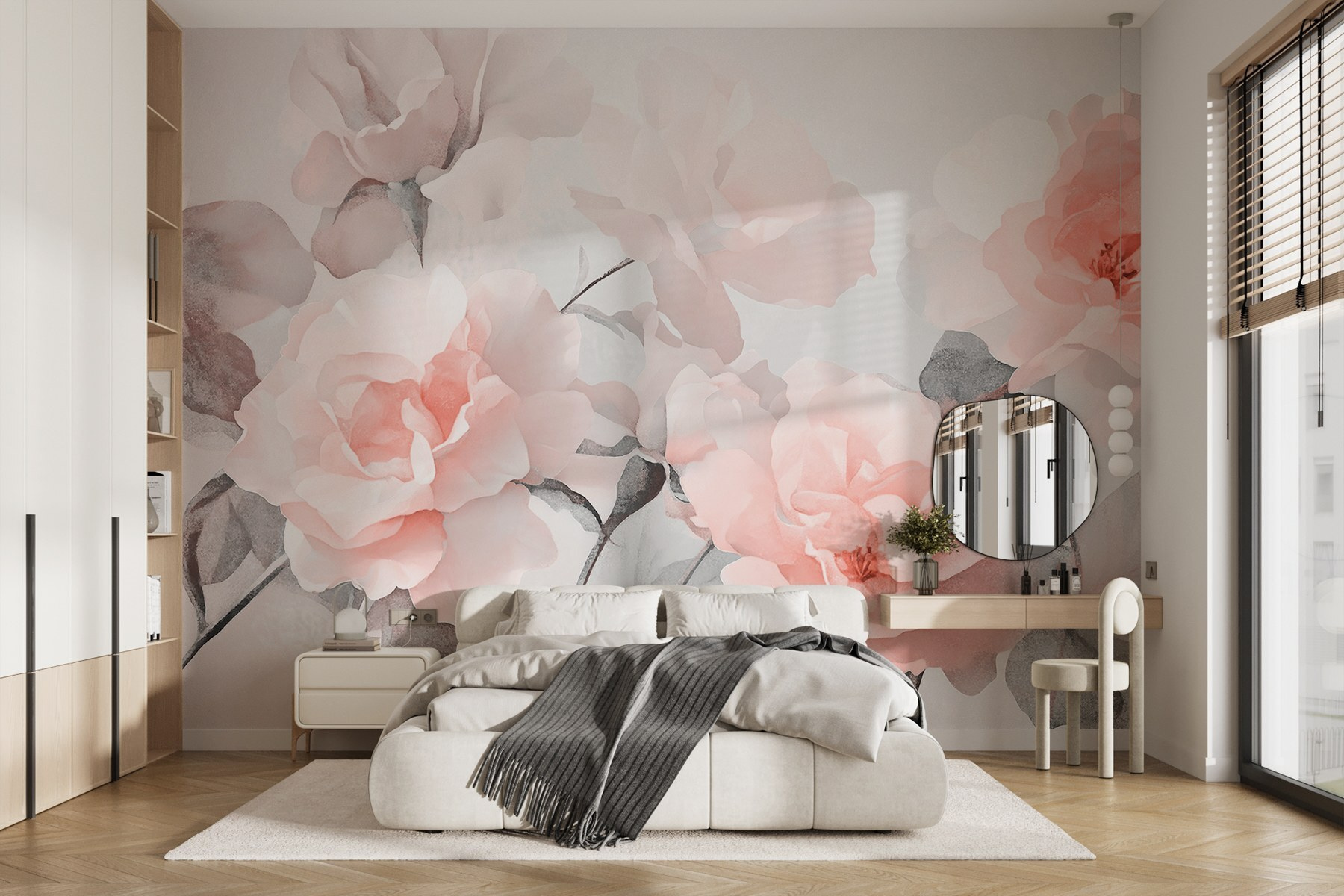 Proměňte svůj prostor s nádechem rozmarnosti pomocí této okouzlující nástěnné malby s krásnou skupinou růžových květin. Představte si, že vejdete do místnosti, která působí jako něžné jarní ráno, kde každý kout vypadá, že kvete. Jemné odstíny a akvarelové vibrace vybízejí k hřejivosti a klidu, takže se skvěle hodí do útulného čtecího koutku nebo inspirativního tvůrčího prostoru. Přátelé se budou divit, že jste si najali zahradníka – jen bez konve. Když na ně dopadá to správné světlo, zdá se, že se květy téměř pohupují a vyzařují klidnou, veselou energii. Ideální pro každého, kdo zbožňuje kousek přírody v interiéru!
