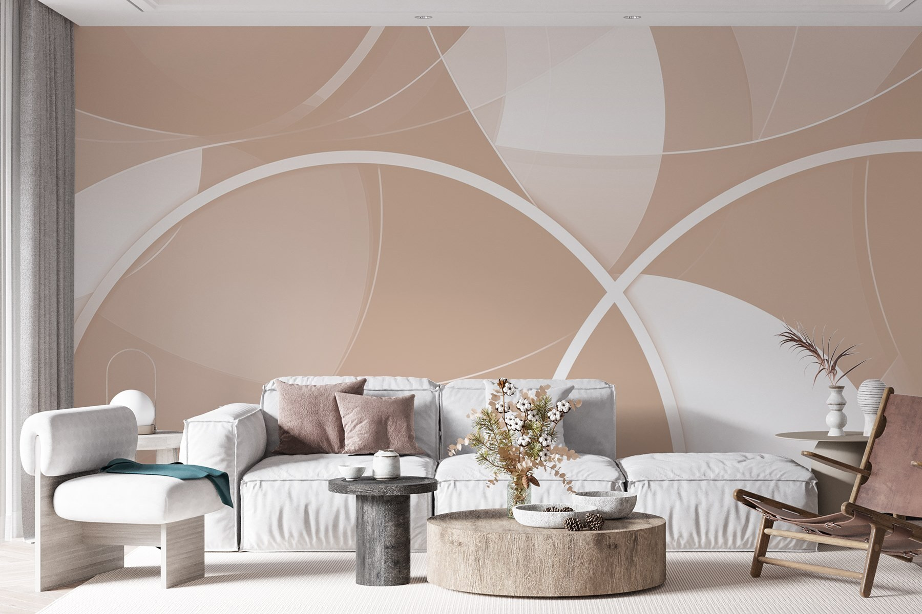 Proměňte svůj prostor pomocí této úžasné nástěnné malby s hravými bílými a šedými kruhy. Představte si, že vstoupíte do místnosti, kde jemné tvary tančí po stěnách a vytvářejí příjemnou atmosféru, která je klidná a elegantní zároveň. Je to jako zabalit stěny do útulné umělecké přikrývky, která přitahuje pozornost a podněcuje konverzaci, aniž by zahlcovala smysly. Ať už se jedná o obývací pokoj nebo klidné zákoutí, tato nástěnná malba naladí relaxační tón. Je ideální pro dny, kdy si chcete odpočinout s dobrou knihou a šálkem teplého čaje. Lehká a vzdušná, přesto plná charakteru – tato nástěnná malba dodává nádech rozmarnosti, po kterém každý touží. Kdo by řekl, že kruhy mohou být tak osobité?